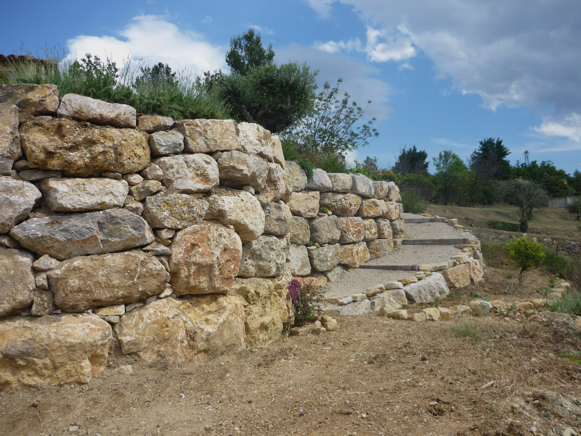 Travaux de terrassements Bassin de rétention d'eau de pluie, Enrochement, Aménagement de villas avec terre et gravier, Murs en pierre, Vente de terre végétale...